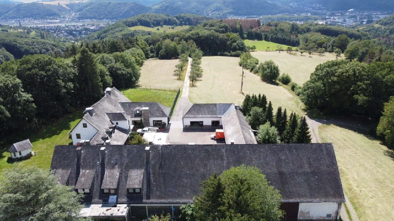 Der Gutshof liegt etwas abgeschieden inmitten von Wäldern und Wiesen, östlich des Ortsteils Arienheiller. Die Gemeinde bietet eine gut ausgebaute Infrastruktur mit Einkaufsmöglichkeiten, Restaurants, Banken, Ärzten, drei Pflege- und Altenheimen sowie Kindergärten, Grundschule, Realschule Plus und sonderpädagogische Einrichtungen. Weitere Angebote befinden sich im ca. 4 km entfernten Bad Hönningen. Weiterführende Schulen im ca. 11 km entfernten Linz oder im ca. 17 km entfernten Neuwied. In Rheinbrohl beginnt die deutsche Limes-Straße. Außerdem hat der Ort einen Regionalbahnhof; der nächste ICE-Bahnhof in Koblenz ist ca. 35 km, die Autobahn A48 Bendorf/Neuwied ist ca. 27 km entfernt.
