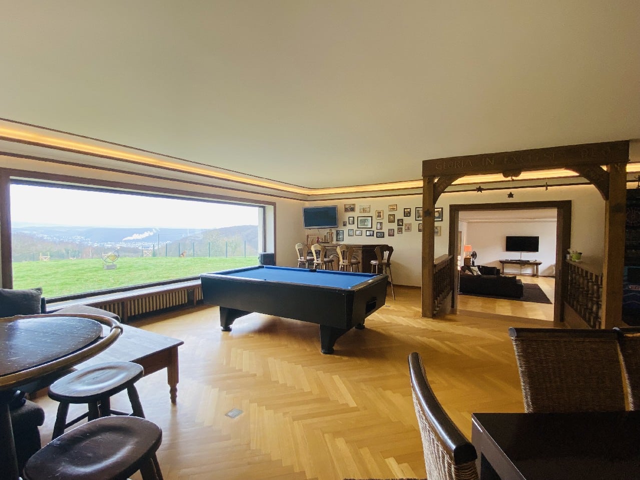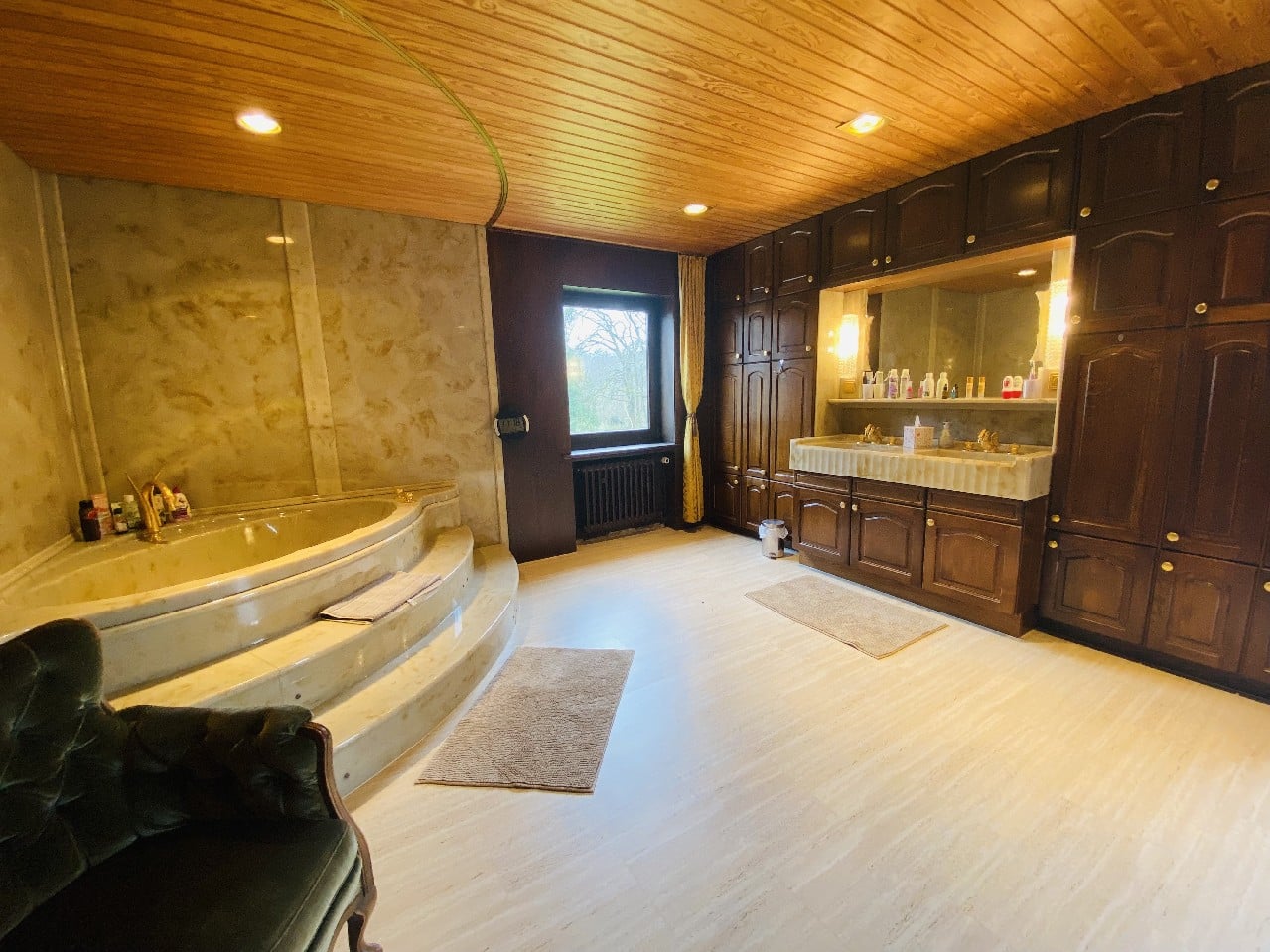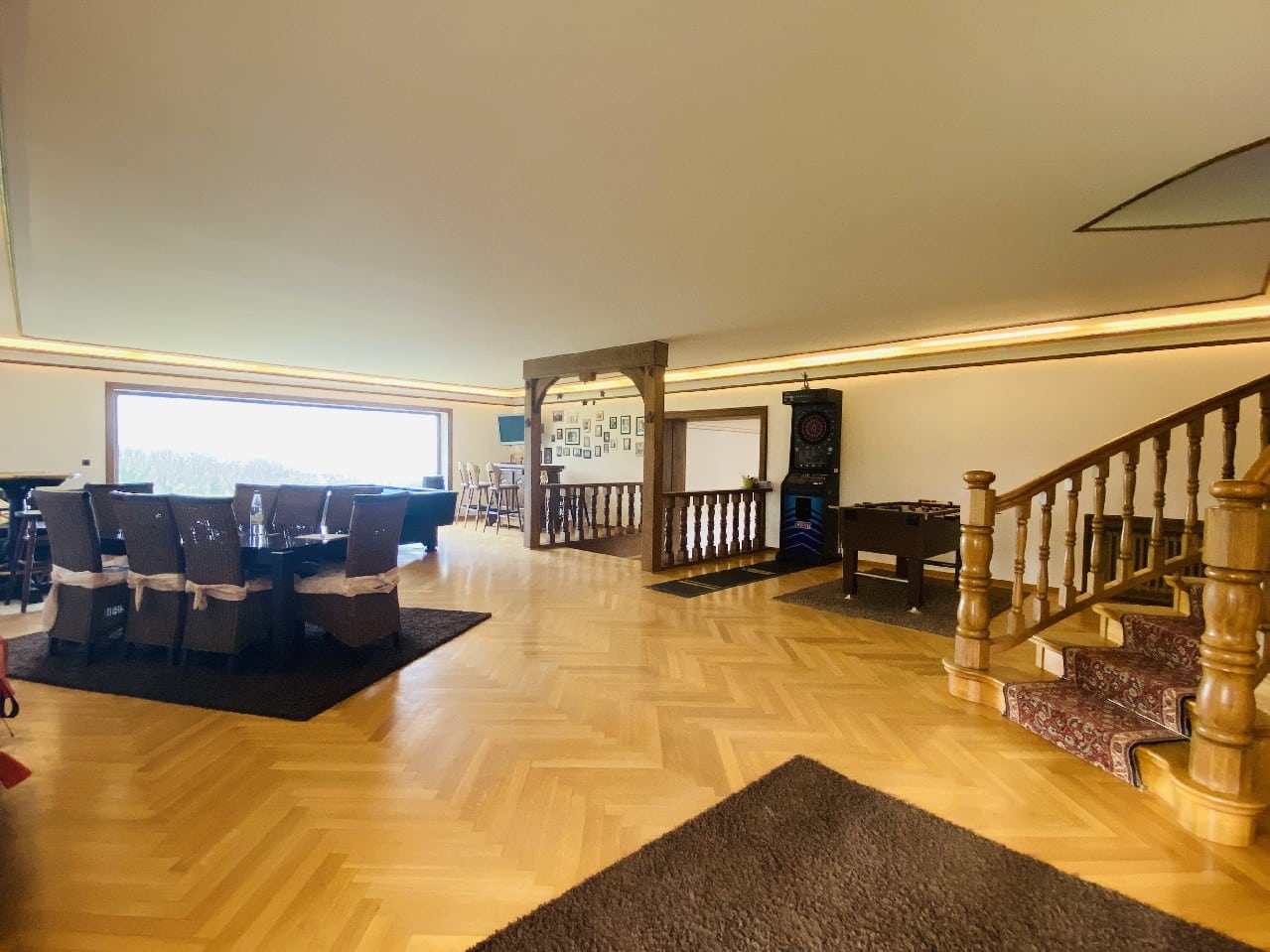 Die erste und größte Wohneinheit verfügt über einen empfangssaalähnlichen Wohnbereich, eine geräumige Küche mit Essbereich sowie 3 Badezimmern und diversen Nebenzimmern. Zudem gehört zu dieser Wohneinheit ein gemütlich gestaltetes Wohnzimmer mit Kamin, welches sich ideal als zentraler Treffpunkt für die ganze Familie eignet.