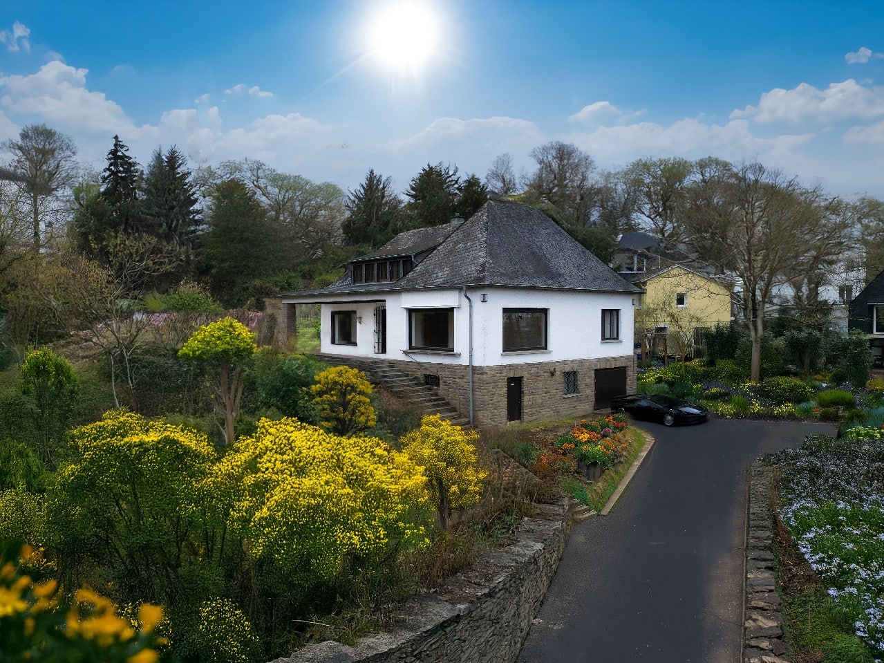 Diese charmante Villa aus dem Jahr 1950 befindet sich auf einem ca. 2.080 m² großen Grundstück in einer der begehrtesten Lagen Bonns, dem Villenviertel Bad Godesberg.