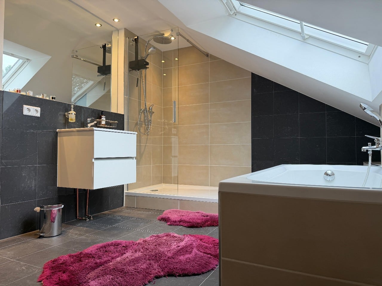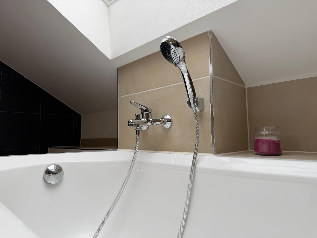 Badezimmer mit Badewanne und Dusche